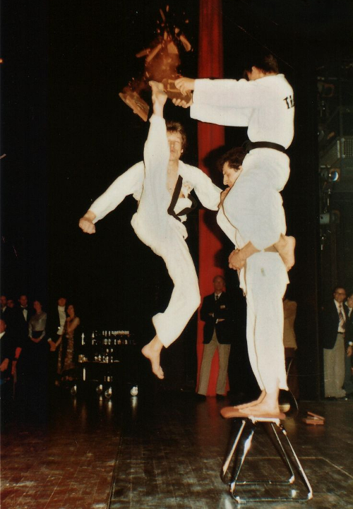 Buchtest Twio-Nopichagi in extremer Höhe. Durchgeführt im Rahmen einer Taekwondo-Vorführung |
